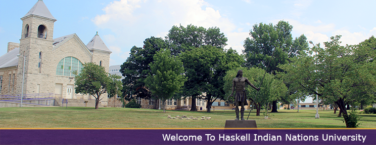 Haskell Indian Nations University (HINU) is the premiere tribal university in the United States, offering quality education to Native American students. Haskell’s student population averages about 1000 per semester, and all students are members of federally recognized tribes. Haskell’s faculty and staff is predominantly native. Haskell offers Associate and Bachelors degrees. Haskell’s historic campus is centrally located in Lawrence, KS in what is known as Kaw Valley.